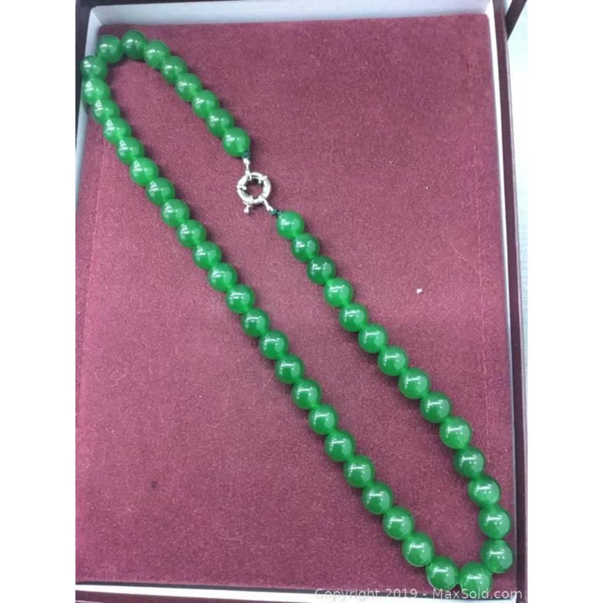 Elegant Large Jade Bead Necklace, With Silver Tone Clamp. View Photos For Further Details.