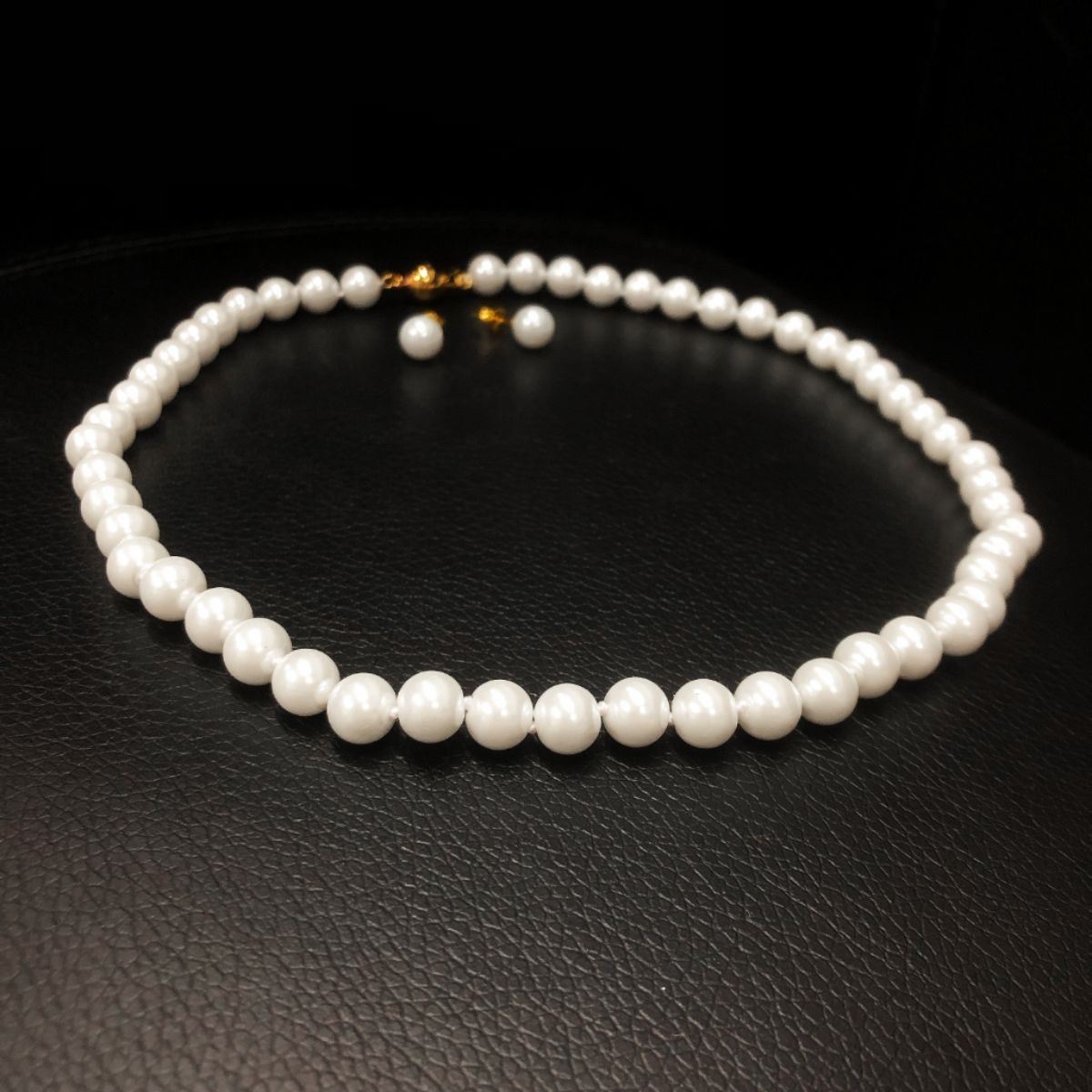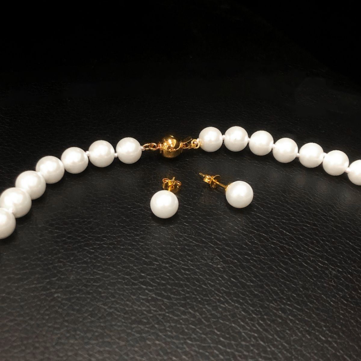 An elegant Pearl Necklace and Earrings, with 55 pearls in total, and 53 on the necklace. The perfect pair for any formal event. View photos for further details.  Â