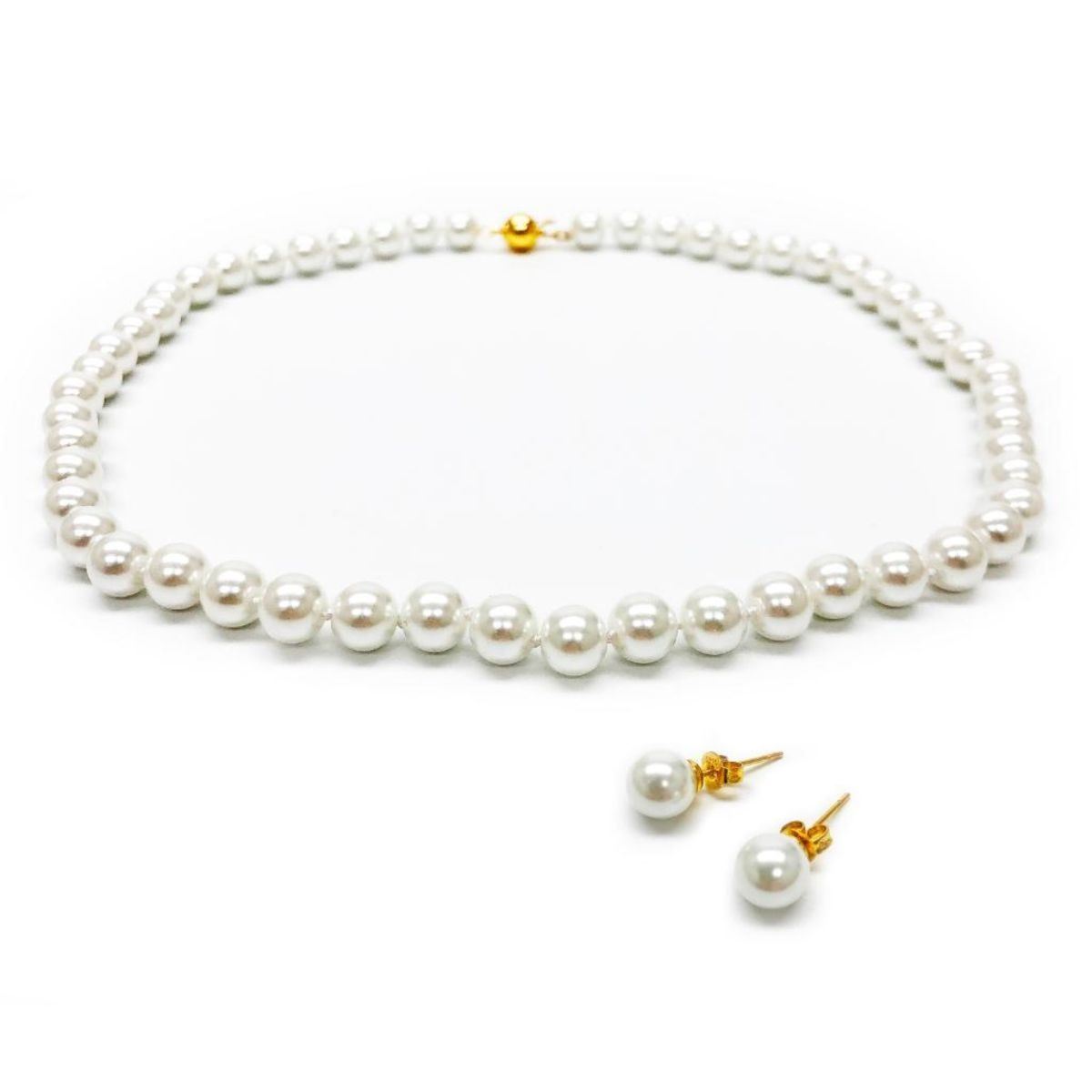 An Elegant Pearl Necklace And Earrings, With 55 Pearls In Total, And 53 On The Necklace. The Perfect Pair For Any Formal Event. View Photos For Further Details.