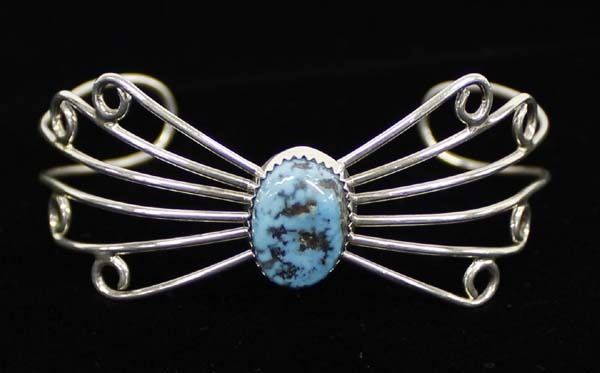 Elegant Native American Navajo Sterling Silver & Turquoise Bracelet by Pauline Dolly Foutz, inside measures 6.5'' x 1 1/8''W, stamped sterling and hallmarked F