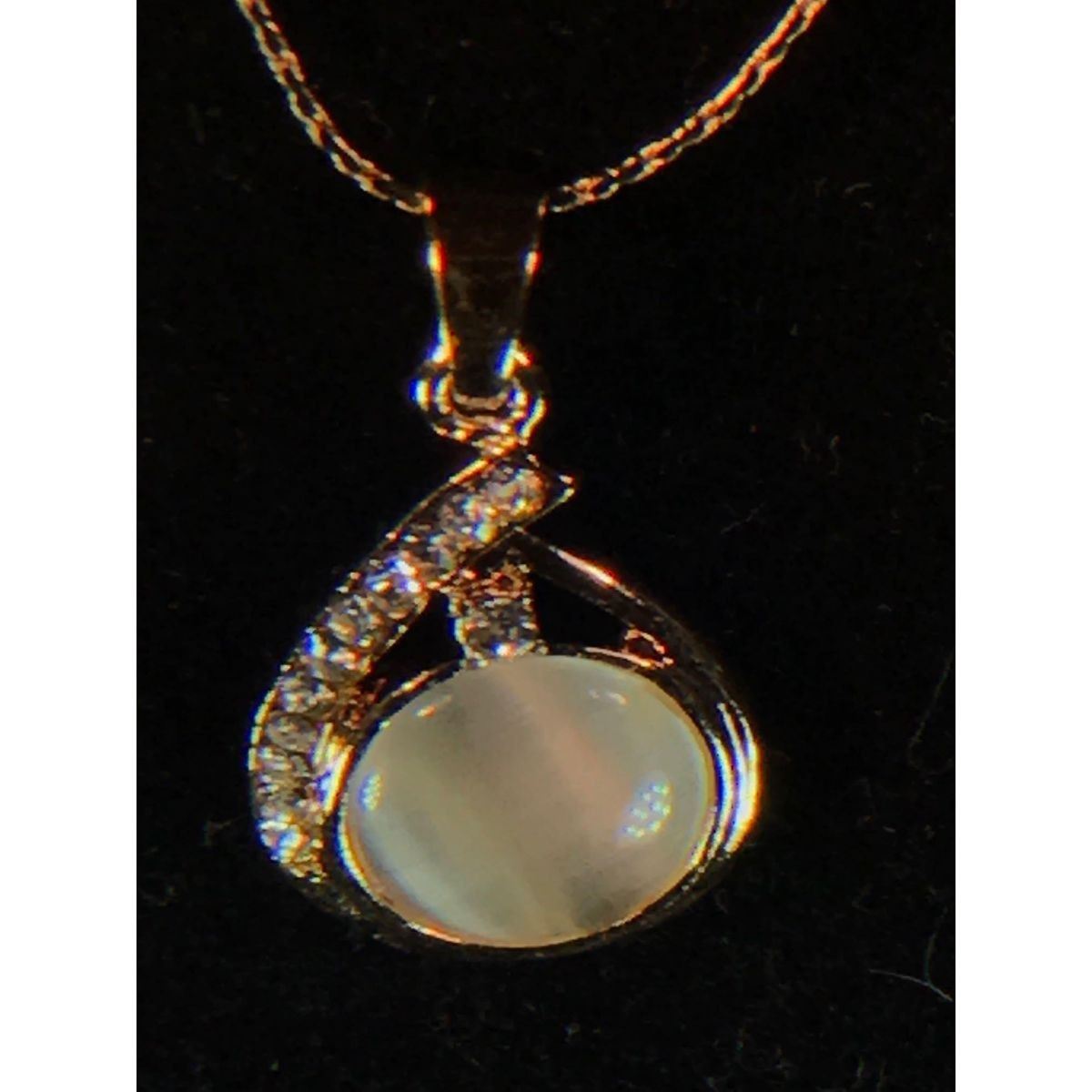 Contemporary designer necklace with opal rhinestone set in golden charm and necklace. - #294C-294-70