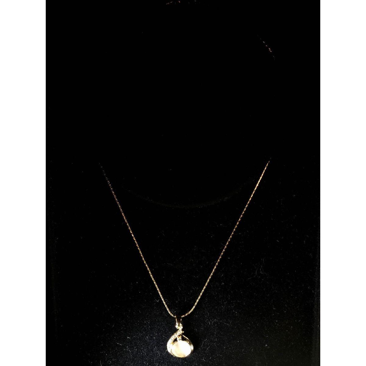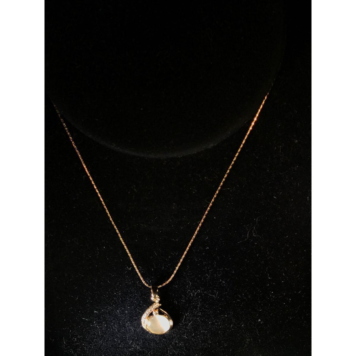 Contemporary designer necklace with opal rhinestone set in golden charm and necklace. - #294C-294-70