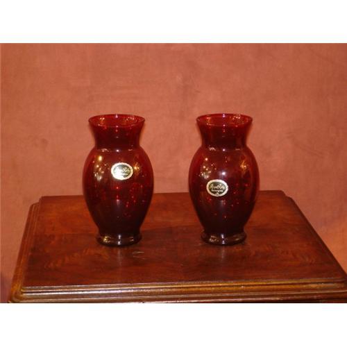 Elegant Pair of Royal Ruby Anchorglass Vases.