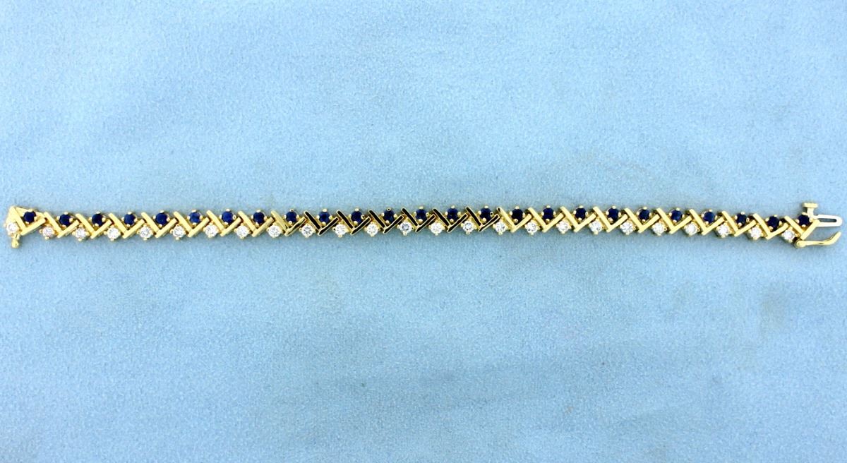 Sapphire and Diamond bracelet in 14k yellow gold. 25 brilliant cut diamonds SI/VS clarity and G/H color, 1.5ct TW. 25 AAA Sapphires, 1.5ct TW. The bracelet is 7 inches long and has a safety catch. 21.2g