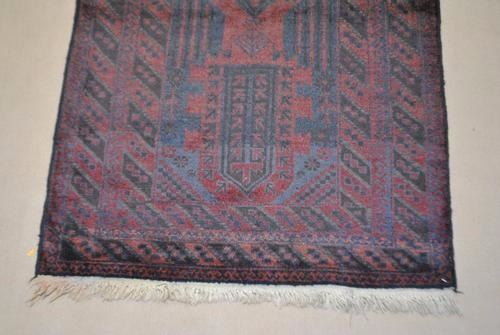 Elegant Semi-Antique Persian Balouch 2.11X4.9 feet. made of fine quality lamb's wool pile on wool foundation, incorporating two central medallions and framed beautifully by an intricately done geometric border. Balouch hand-woven rugs using beautiful vegetable dyed Baloochi wools. Hand woven in Baloochistan, Iran.