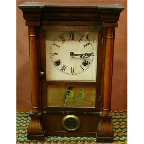 Elegant Seth Thomas Column Clock. 1873 with Painted Birds.