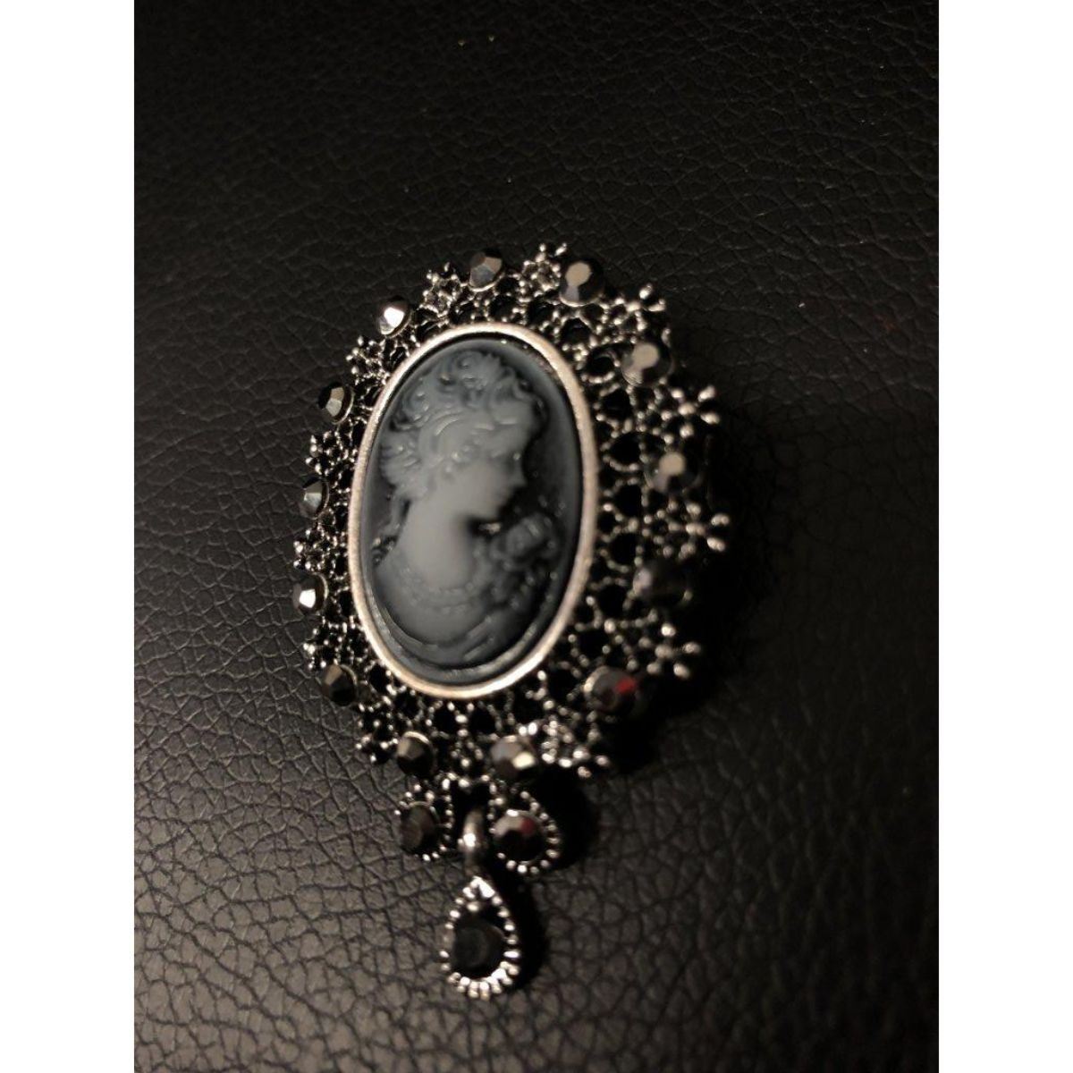 Elegant Gray Semi Precious Cameo Broach, View Photos For Further Details.