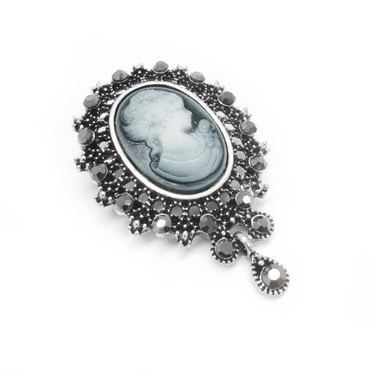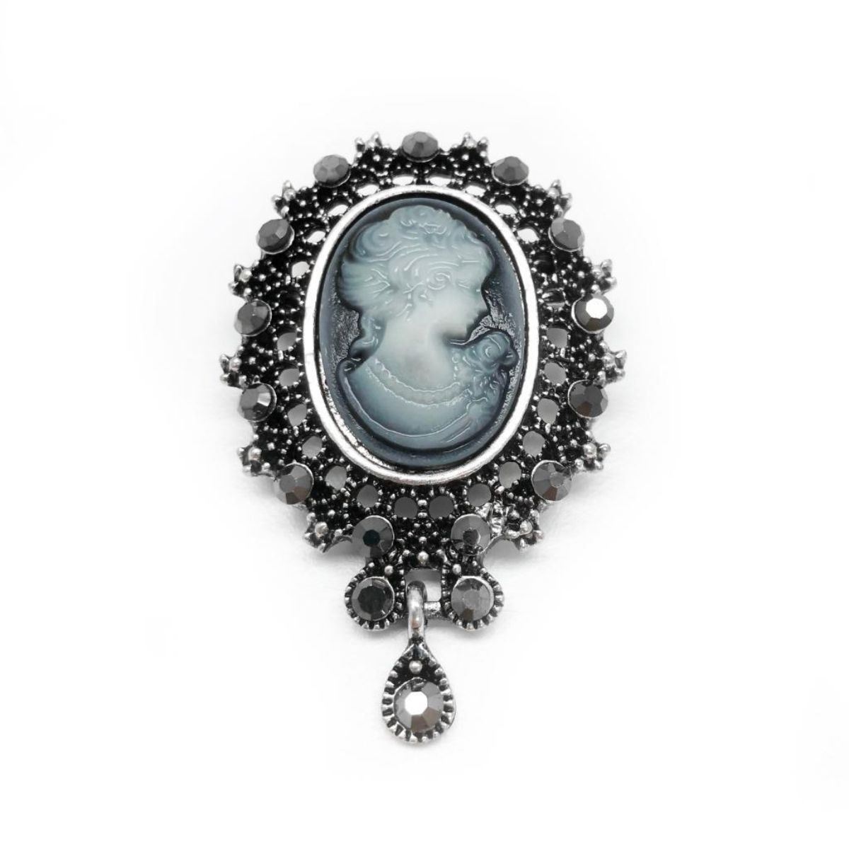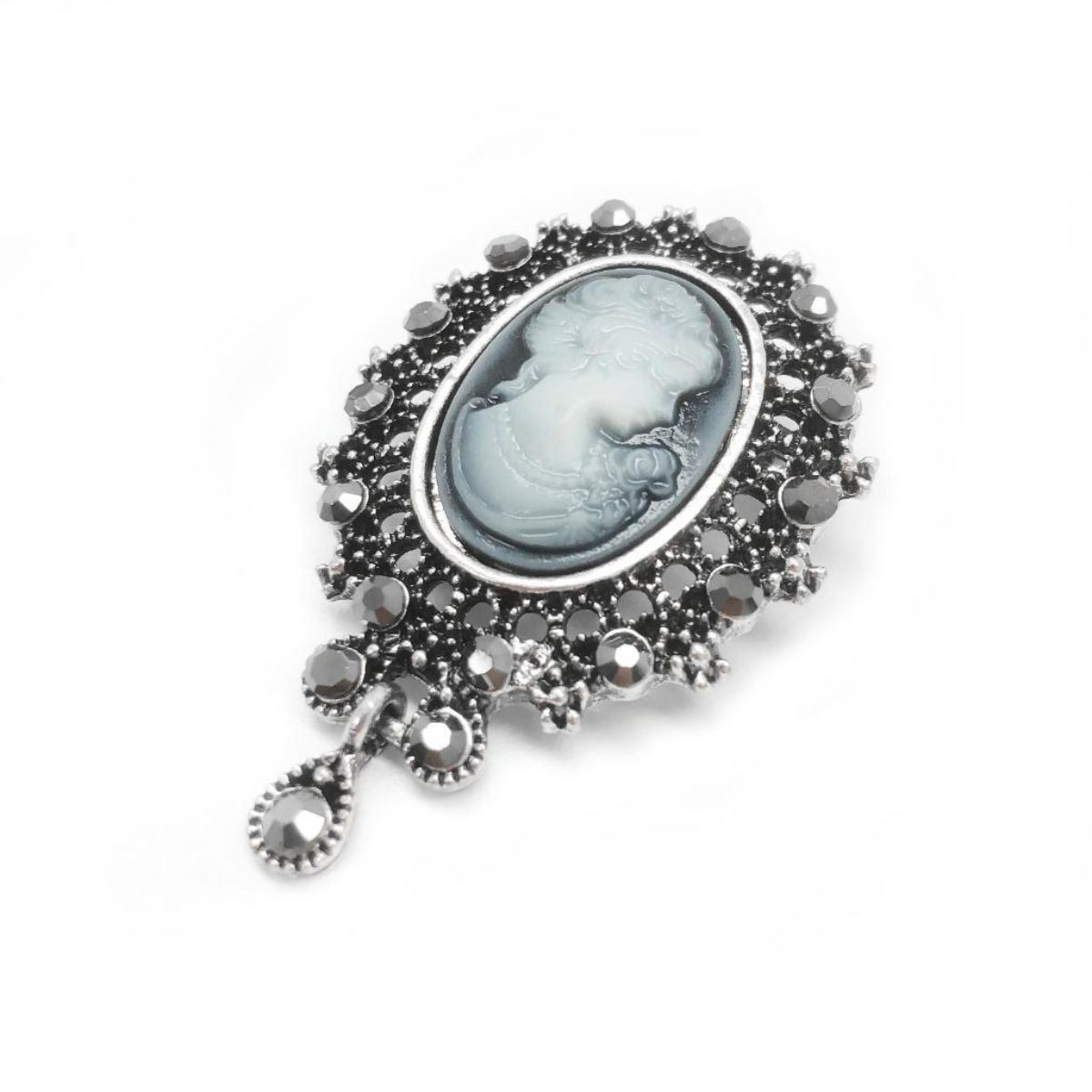 Elegant Silhouetted Gray Semi Precious Cameo Broach. View Photos For Further Details.