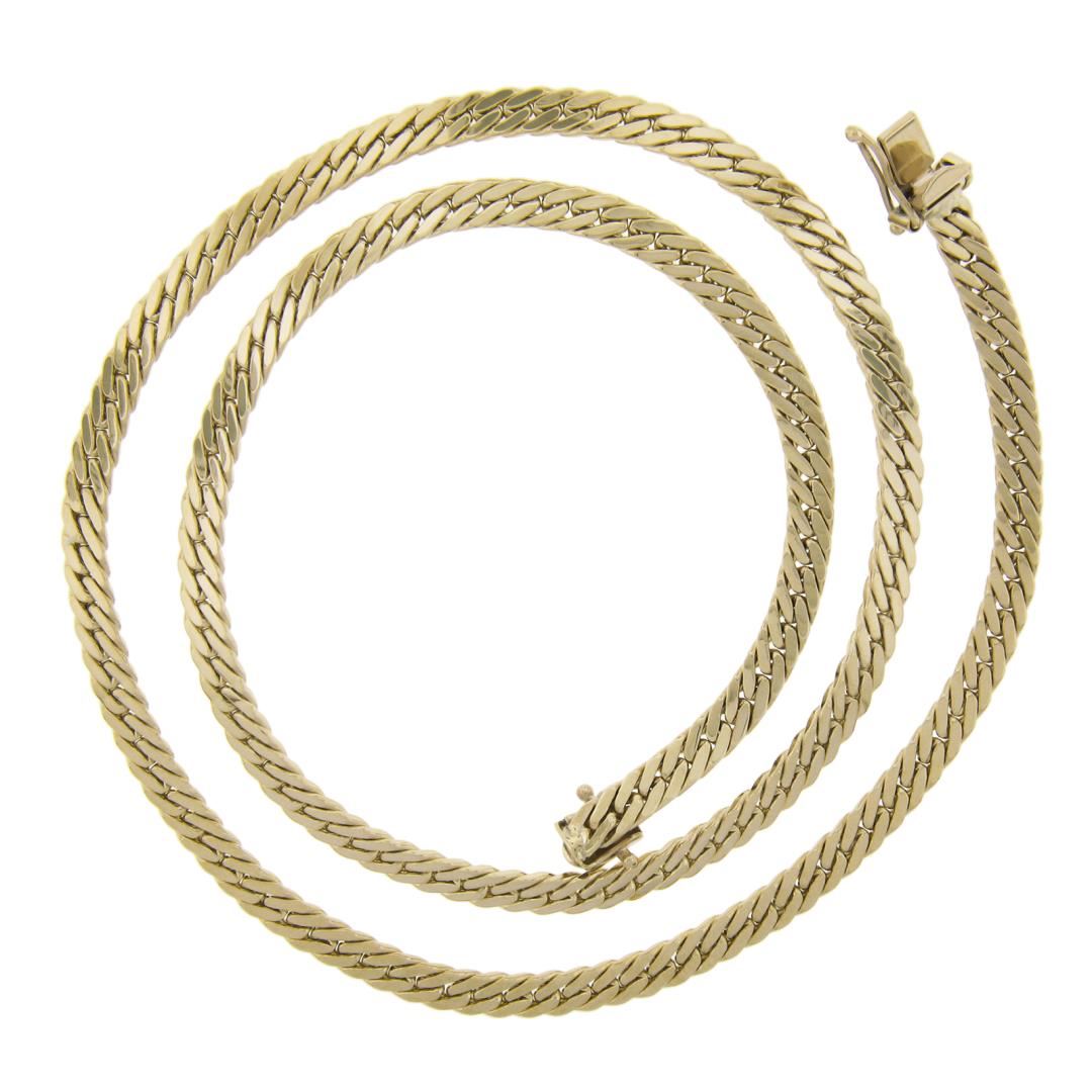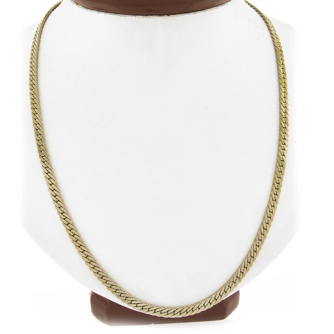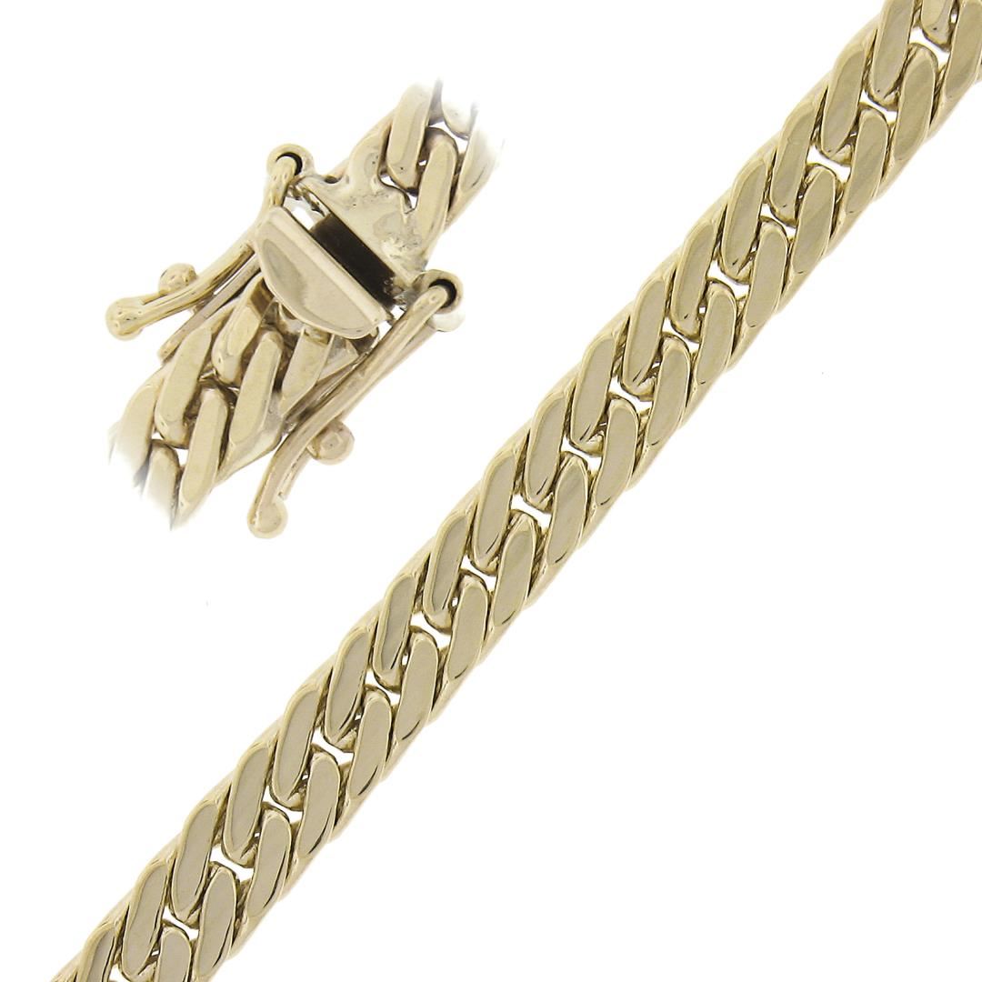 A solid 14k yellow gold curb link chain necklace. It weighs a total of 30.33 grams, measures 4.3mm wide, and measures 20 inches in length.