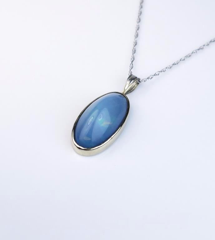 Opal weighing approx. 7.00 carats set in a 14 karat white gold custom made setting. Estimates $800-$1,200