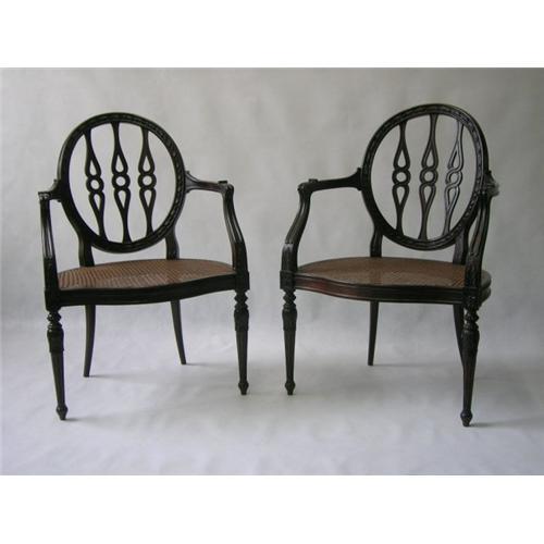 ELEGANT PAIR OF 1900'S ADAMS CHAIRS. EXCELLENT CONDITION. ORIGINAL, NATURAL, CANE SEAT.