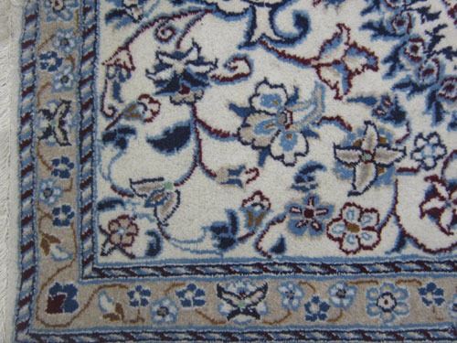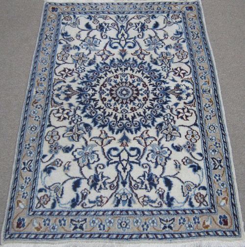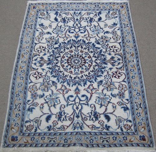 Elegant regal shah abbasi design Persian Nain-Isfahan. Made of fine quality lamb's wool pile on cotton foundation, all natural vegetable dye, incorporating an elegantly done shah abbasi floral pattern on a beautiful background sunburst centerpiece medallion, finely done crowned corners and an intricately done floral border. please note that this design pattern is only able to be done by the most skilled of carpet weavers. From Nain, Iran. Dimensions for Rug from top to bottom: height 54 X width 26 inches. Size: 4 feet 5 inches X 2 feet 11 inches. Country of Origin: Iran.