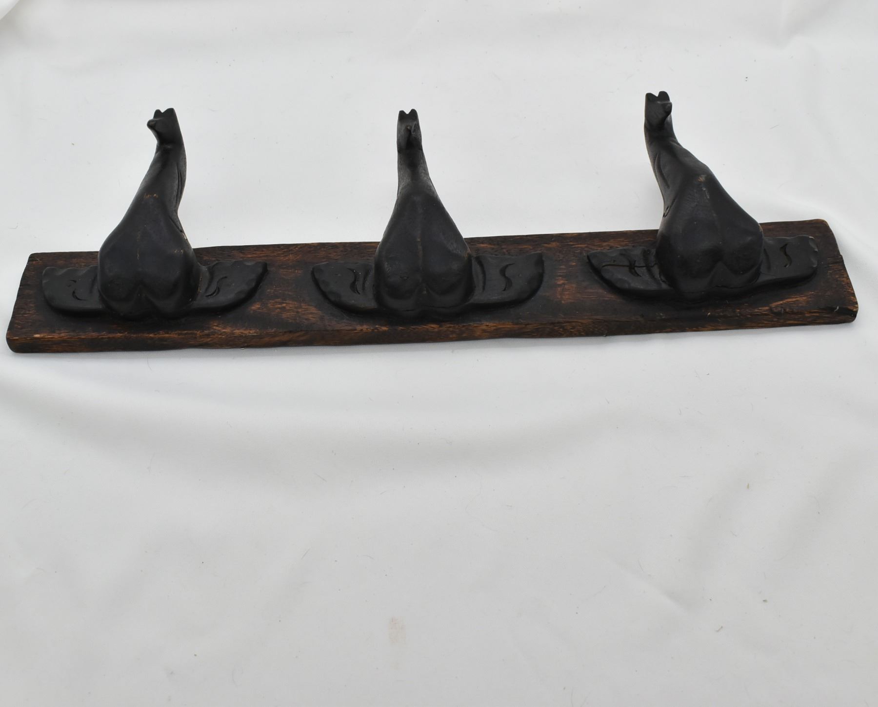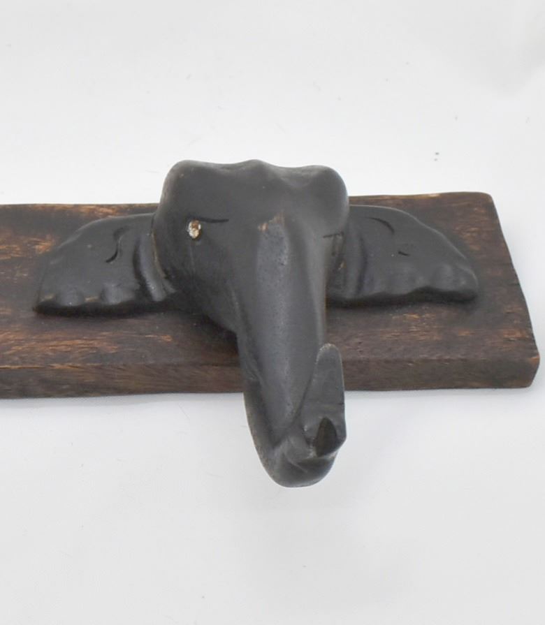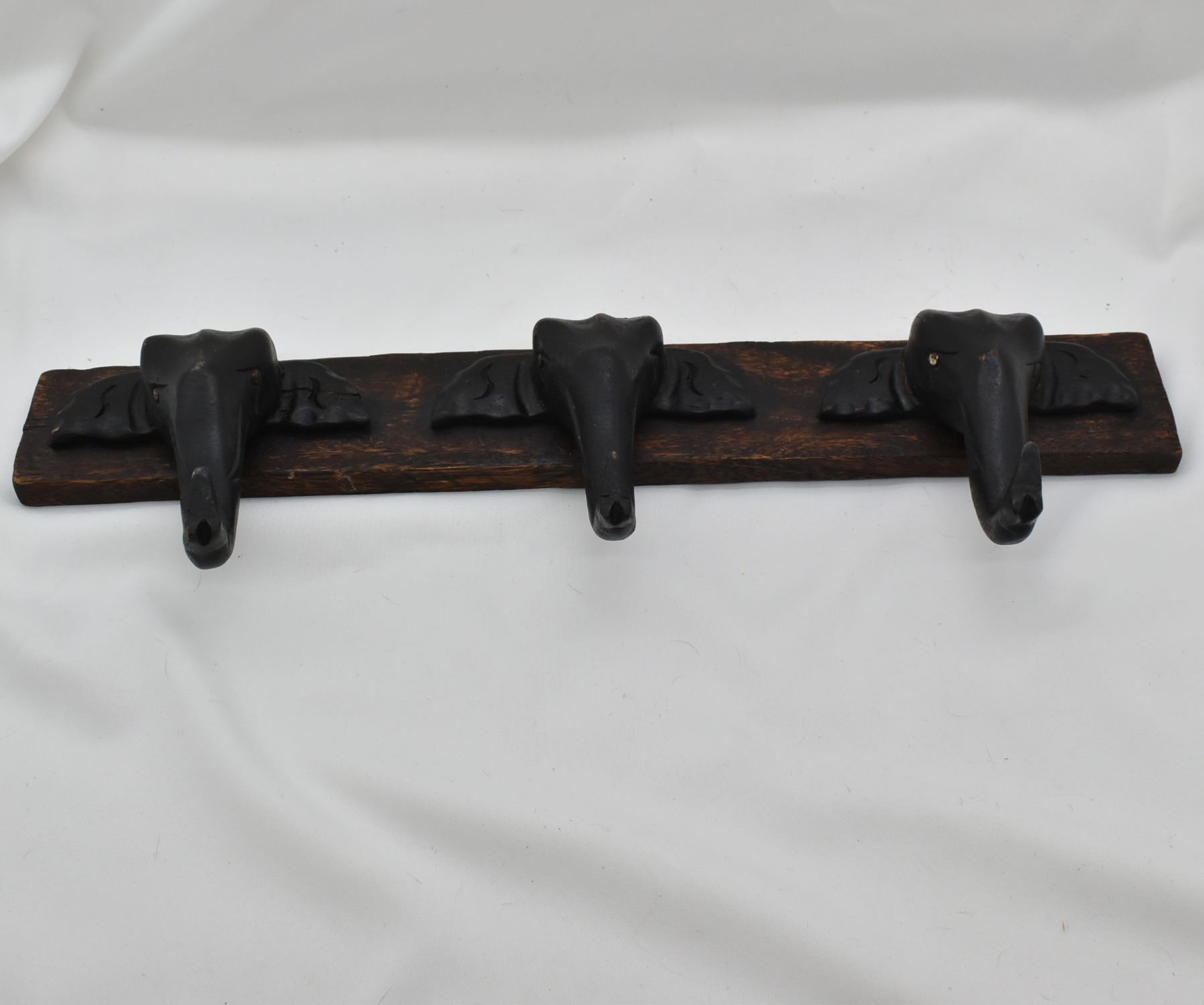 Elephant Coat Rack. With it's 3 Elephant head hooks this item measures 21'' x 6.25''.