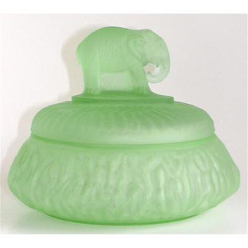 <tr><td>Title:Elephant Green Satin Glass Powder Jar</td></tr>