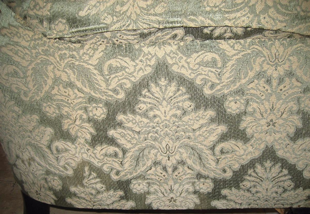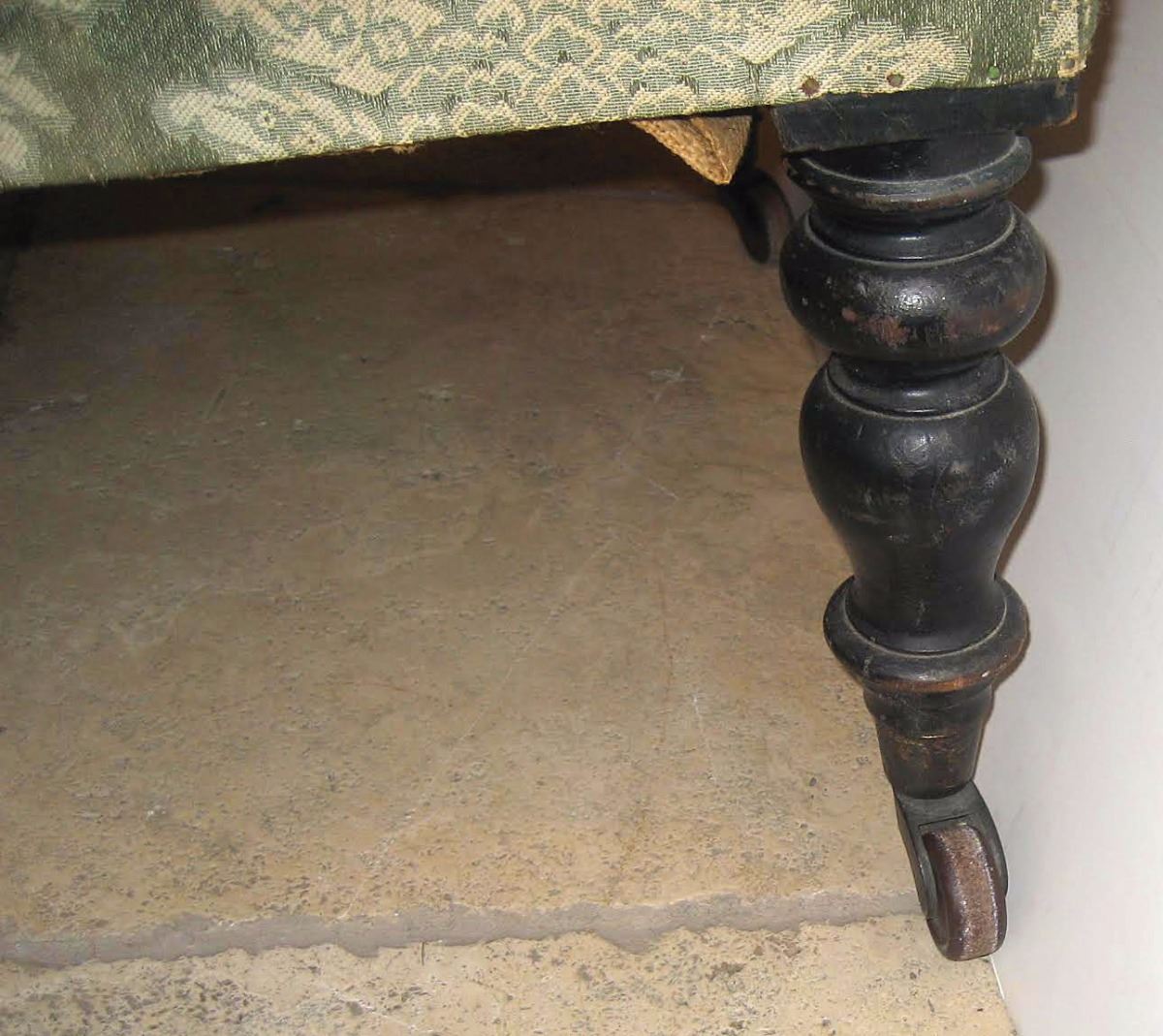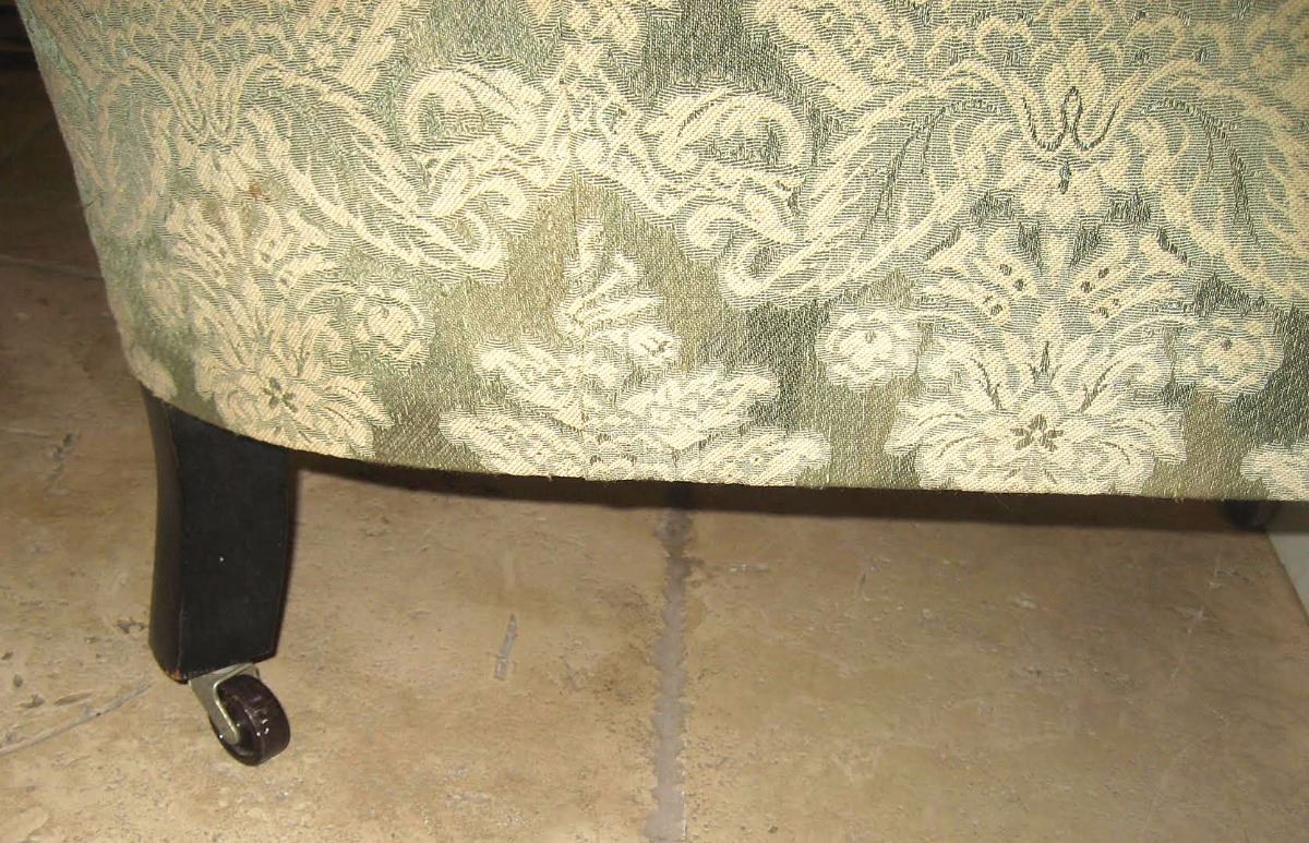 Victorian light-and-dark green ebonised tub armchair personally-owned and -used by Joseph Merrick, 'the Elephant Man.’ The custom-made armchair, measuring approximately 29.75? in width, sits on baluster turned front legs with brass cappings and ceramic castors, and slightly splayed square section back legs with replaced wheels. The reverse of the seat bears an attached strip of wood painted with the words: “The Elephant Man’s Chair.” Accompanied by four biographical books on the life of Joseph Merrick, with each depicting images of the famed Victorian chair. Also accompanied by a letter of provenance from a relative of the original recipient, in part: “William Taylor (1834–1911)—my great grandfather was engineer at London Hospital from 1876 until his retirement in January 1896. One of his sons, Edward Charles Taylor (1869–1951—my grandfather) lived with his father at 55 Lindley Street and at 66 Dempsey Street, both in Stepney until his marriage to my grandmother in 1896. It was he who used to play the violin in a private recital for Joseph’s entertainment. The special armchair was made for the Elephant Man consisting of a high seat, because of his hip, and large head pieces to the sides to support his massive head. After the Elephant Man’s death on 11th April 1890 this chair passed into the possession of my great-grandfather and came to me indirectly via my grandfather and father.” Oversized.