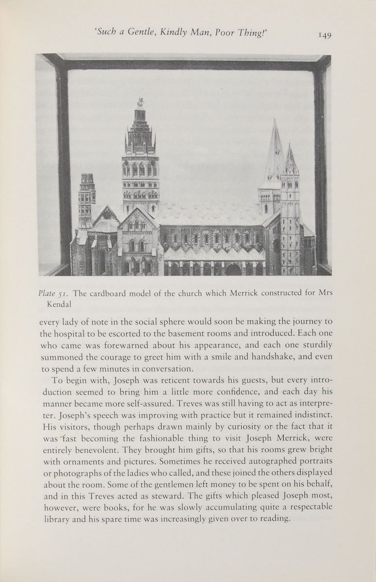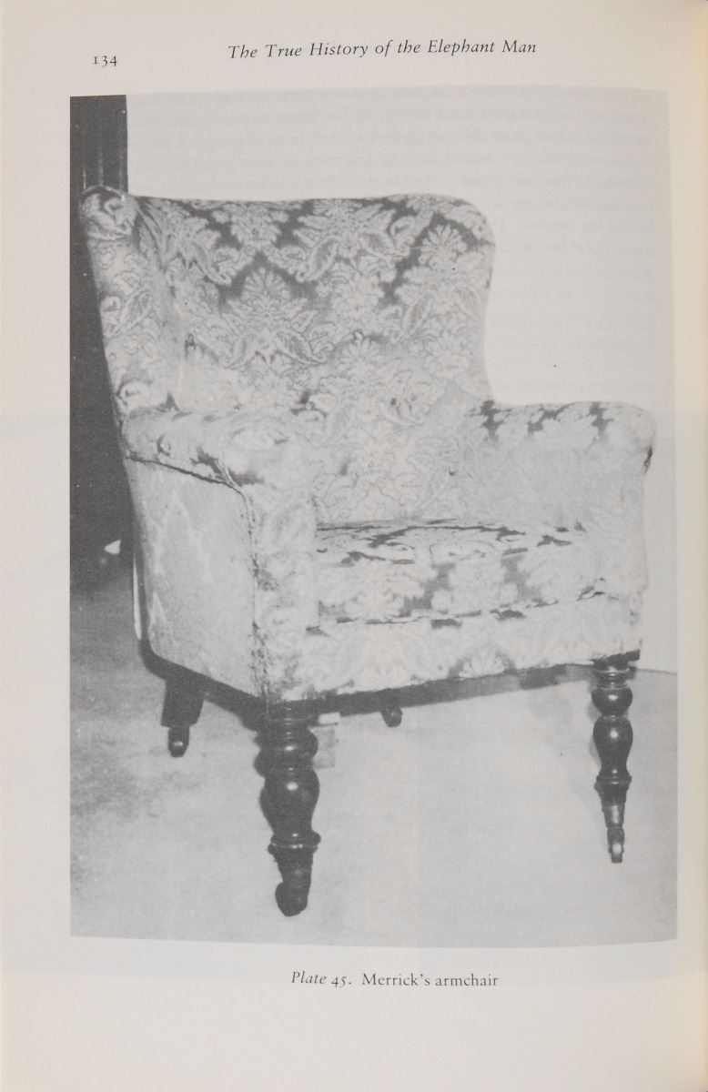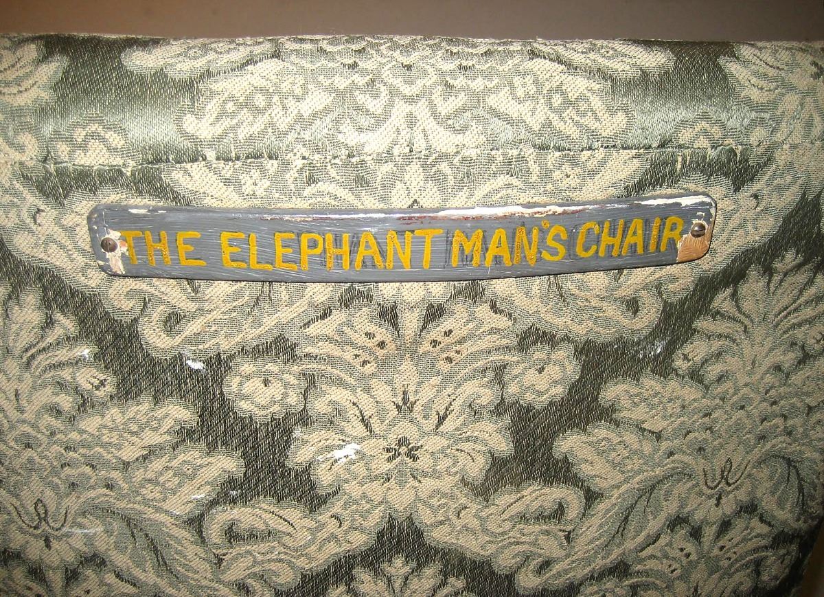 After years of penny gaff shows and exhibition touring as the ‘Elephant Man,’ Joseph Merrick lived the remainder of his life at London Hospital under the care of several house surgeons, a staff of nurses, and the beneficent Dr. Frederick Treves. Given the necessary privacy he had for so long craved, Merrick resided in a basement apartment below the ‘Bedstead Square’ courtyard in the hospital’s east wing. Designed by William Taylor, the hospital’s chief engineer, the quarters consisted of two small rooms—a modest bathroom and a sun-speckled bed-sitting room, the latter featuring a bed, a table and chairs, and a small fireplace with mantelpiece, before which Merrick’s tub armchair, also specially crafted by Taylor, was comfortably placed. Until only recently, the Merrick chair appeared as part of a display in the Medical Museum of the Royal London Hospital. With such close proximity to the tragic yet inspiring tale of the ‘Elephant Man,’ this poignant display piece exists as a unique and heartfelt examination of one man’s quest for normalcy.