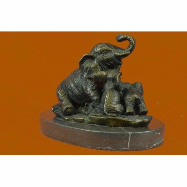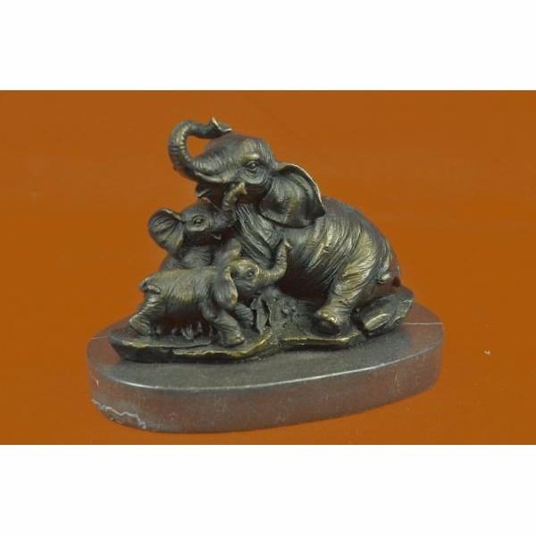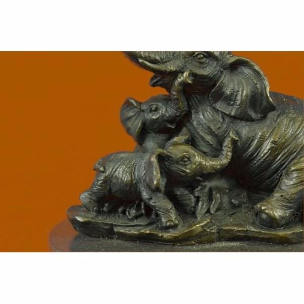 The Elephant Family Celebrates The Unbreakable Bond Between Mother And Child. The Artist Captures A Sweet Moment Between Mother And Child And Uses The Lost-Wax Method To Cast These Figures From Molten Bronze, Then Finishes Them With Hand Applied Patinas. Bronze Dimensions with Marble Base: Height 5 X Width 7 inches. Weight: 5 LBS. Please Note: This is a reproduction bronze sculpture from the original molded and signed. This featured bronze sculpture is a recast after the original, and has been done recently. This 100% bronze sculpture is an abstract piece certain to be a conversation piece.
