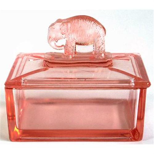 <tr><td>Title:Elephant Pink Depression Glass Deco Dresser Box</td></tr>