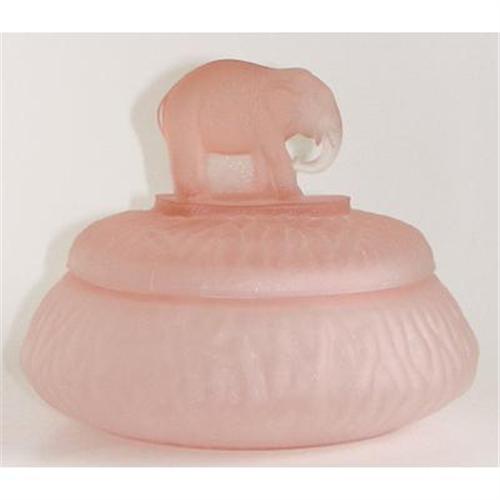 <tr><td>Title:Elephant Pink Satin Glass Powder Jar </td></tr>