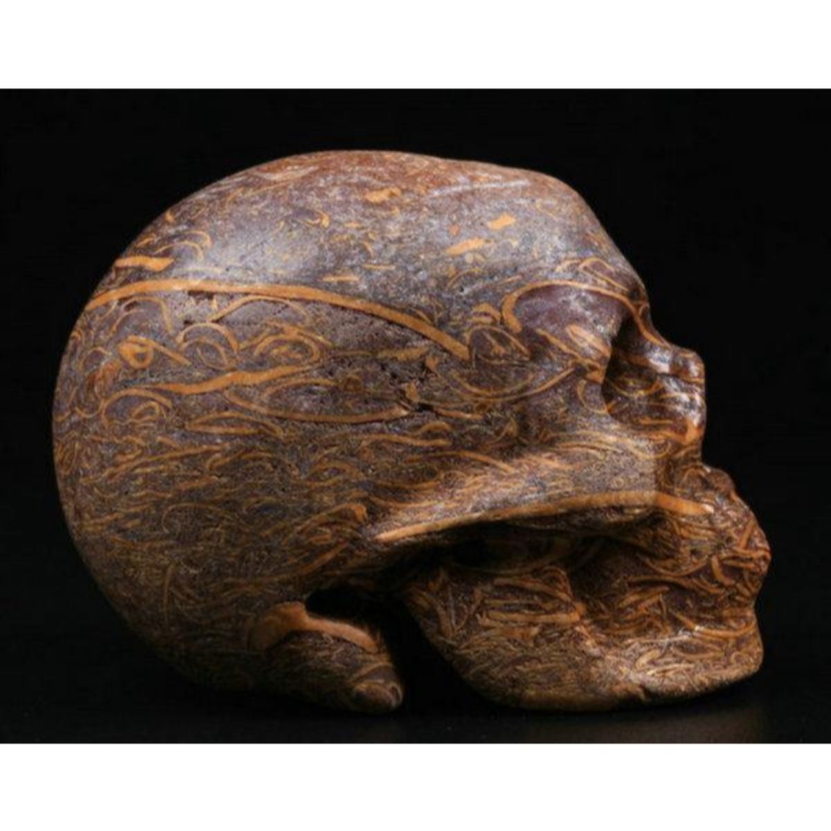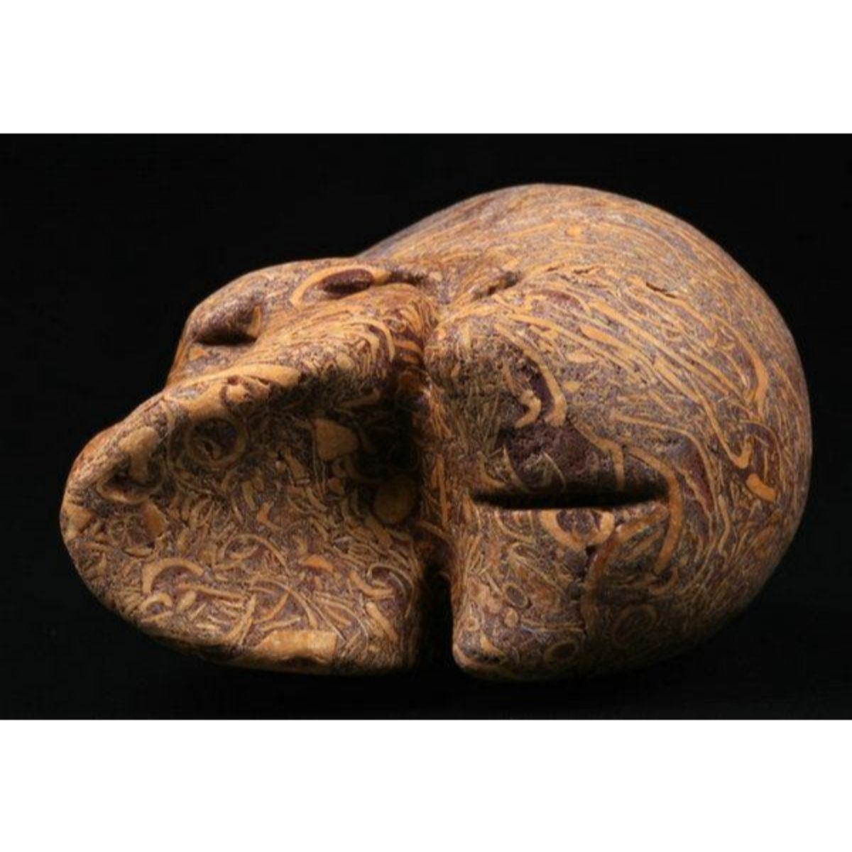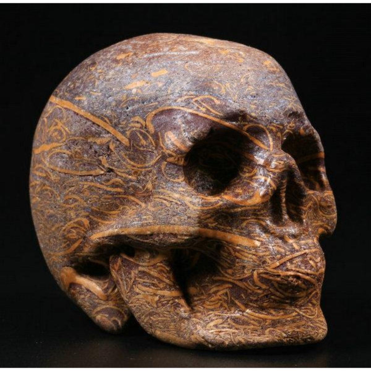 Elephant skin jasper gemstone carving, in the form of a small skull. 2". Nice display piece.Â