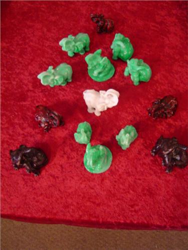 14 piece collection. Two-tone Brown, Lt. Grey Marble and Green Jade Pourstone, 2" to 2.75" sizes