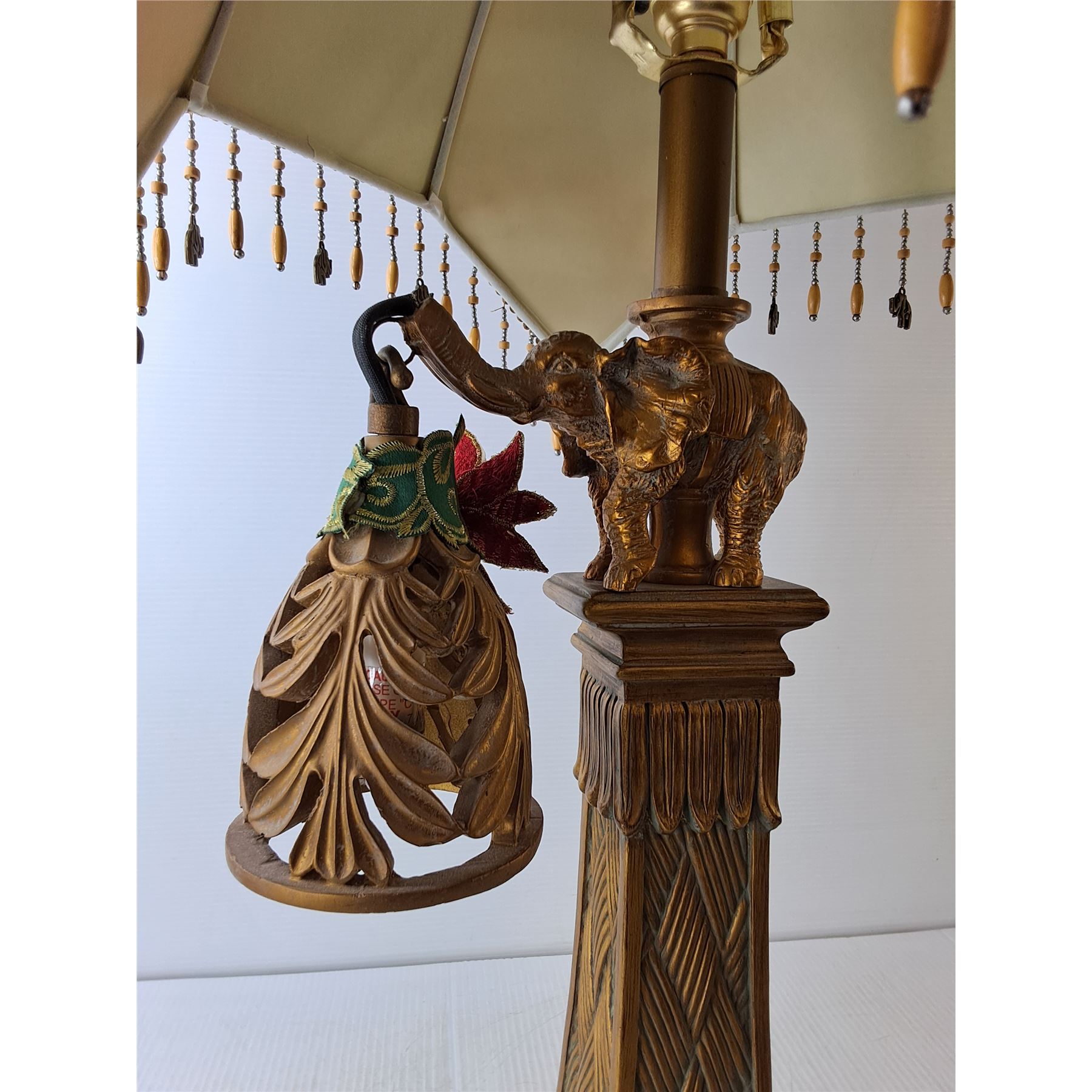 Elephant Style Lamp with Tassled Shade- Working, No Bulb 32" Tall