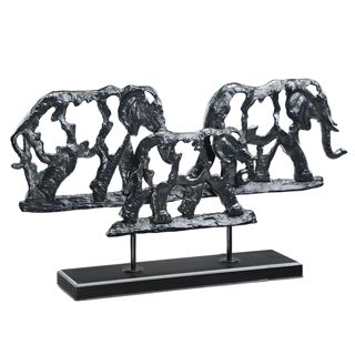 Contemporary Elephant Trio Sculpture - 11.5"H 21"W 4"D - Cast Iron & Wood