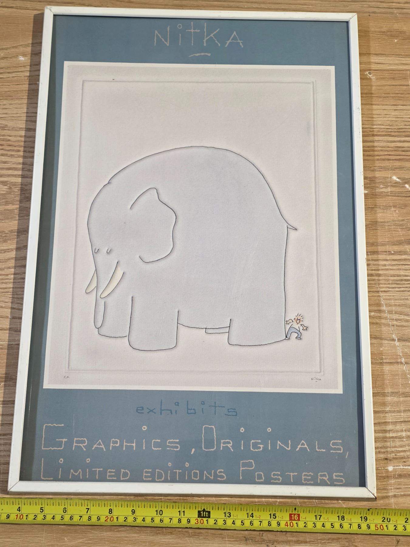 Elephant and little man poster- by louis nitka- 16" by 24"