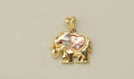Elephant pendant in 14k yellow gold, inset with a rose gold heart, studded with rubies and diamonds. Est. $400 -$500