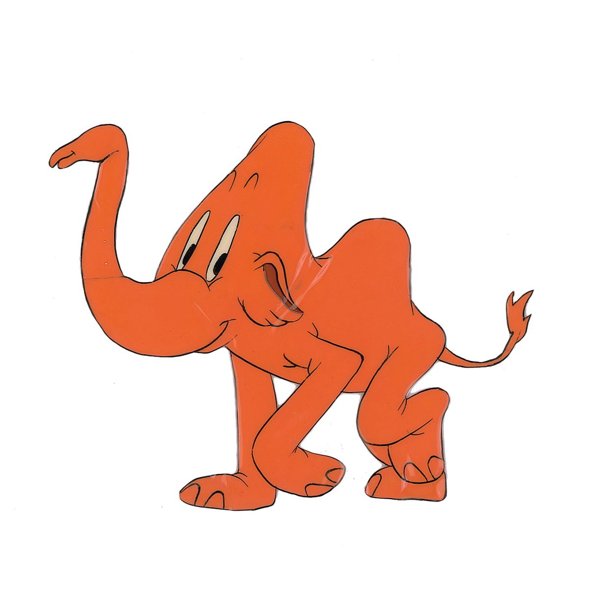 (Walt Disney Studios, 1941) Original production cel featuring an elephant from the ‘Pink Elephants on Parade’ sequence in Dumbo. The cel is trimmed to image and applied to a full 12.5 x 10.5 cel. Image measures 4.5 x 4. A crack to paint in his trunk, otherwise fine condition.