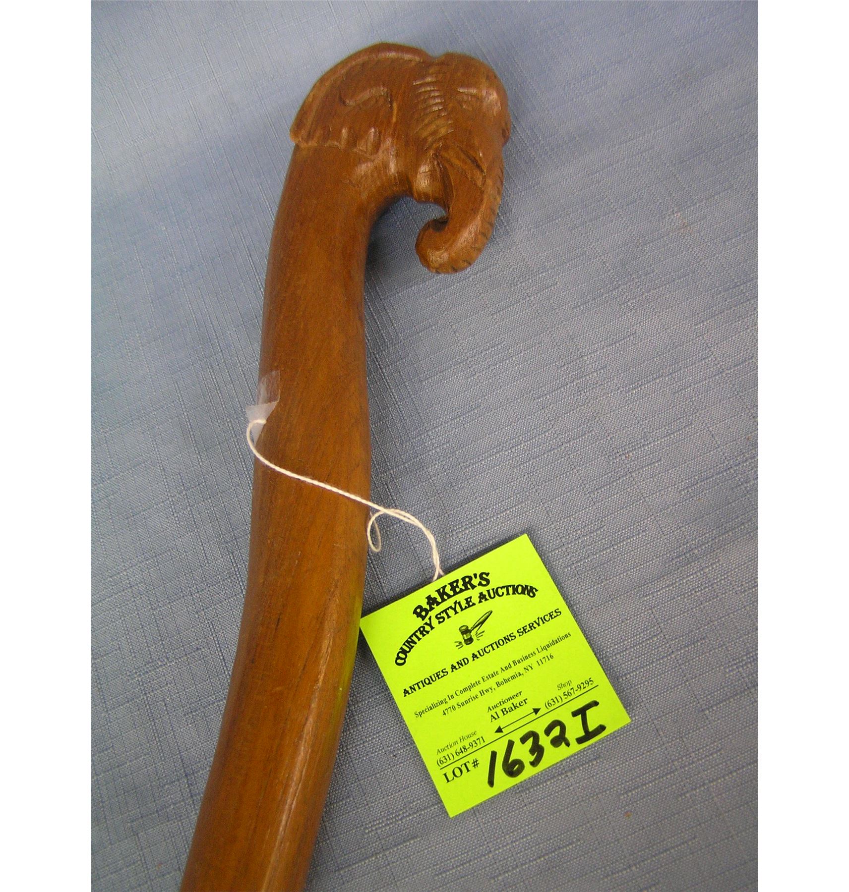 Hand carved elephant shaped figural walking stick est. value $250.00-$275.00