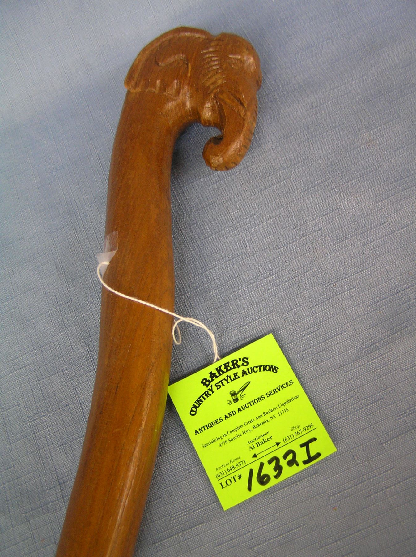 Hand carved elephant shaped figural walking stick est. value $250.00-$275.00