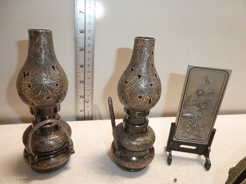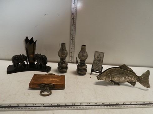 Elephants, Horn Vase,2 small Lanterns, Copper Fis
