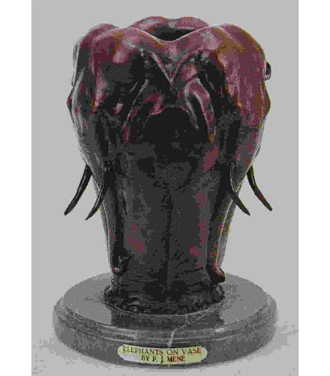 "Elephants On Vase" Bronze Sculpture - After Mene - Museum Brown Finish - Mounted On A Fine Italian Marble Base - Beautifully Detailed - Signed - Mint Condition - 14"H X 8"W - Lost Wax Cast Bronze