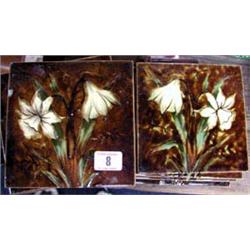 Eleven 1920`s wall tiles of art Nouveau daffodils decoration.