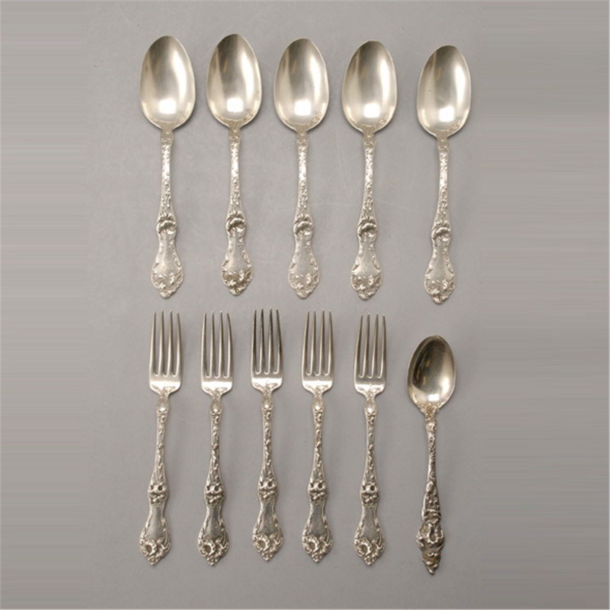 Assembled Group of Eleven Reed & Barton Sterling Flatwares: six spoons and five forks {Total silver weight 24.72 troy oz; length of forks 7 1/2 inches}