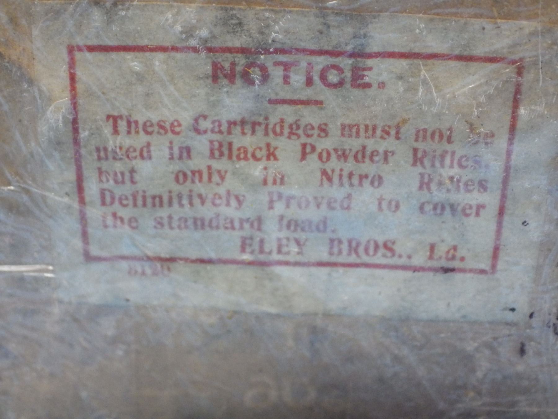 Eley box with 10 nitro 375 Express cartigdges. These are also known as 375 1 1/2" cartridges with 270 grain bullets