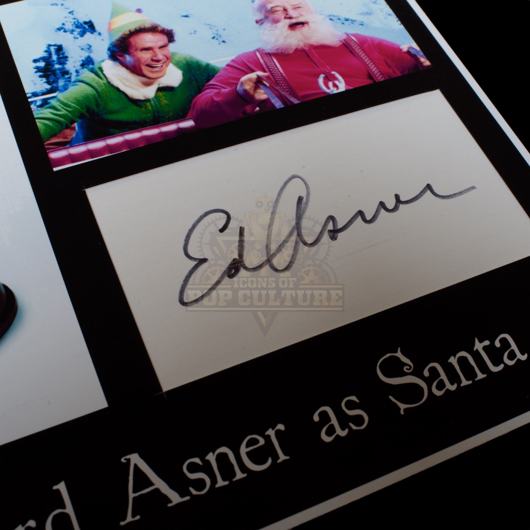 This color 8” x 10” image display features Ed Asner as “Santa” and Will Ferrell as “Buddy”. A 3.5” x 5” index card has been autographed by Ed Asner in black ink and is mounted in the display.