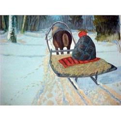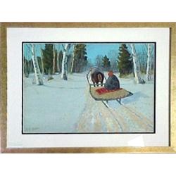 Elf Weiderpons, framed watercolor and gouache, snow scene with horse drawn sleigh, signed Elf. Weiderons, 20th C. Swedish artist, image measures 11" x 19" Estimate 200/350