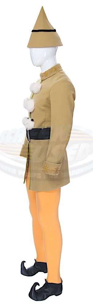 (New Line, 2003) This elf outfit was custom-made by the production for use by Richard McBride. The costume consists of a jacket, tights, hat, vinyl belt with metal buckle, and shoes. The hat is marked "Richard McBride", while the jacket, tights and belt have no markings. The elf shoes are marked 7.5. Along with our ScreenUsed COA, this costume is accompanied by a New Line COA confirming it's use on screen.
