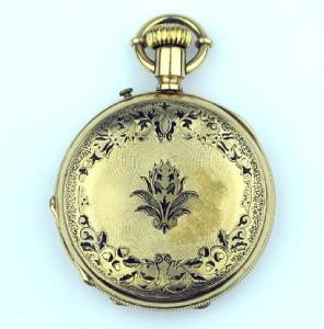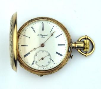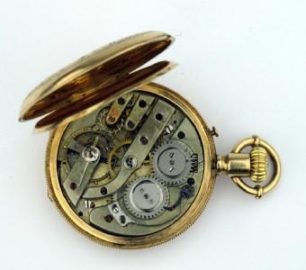 14K Yellow Gold, Double Case Elgin Pocket Watch. The measurements of watch weight: 52.7 grams.The outer rim of the watch has roped style beadwork, while the inside face displays Roman numeral digits and a circular second hand dial. The size of watch: 40 x 52 mm, 10 mm thick .