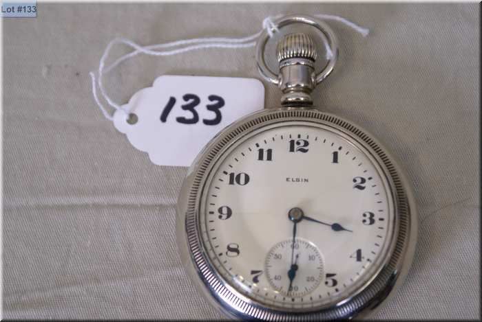 Elgin 18 Size Open Faced Pocket Watch, Made in 1924, stem set, 15 Jewels , nickel silver case, excellent condition & working order