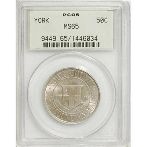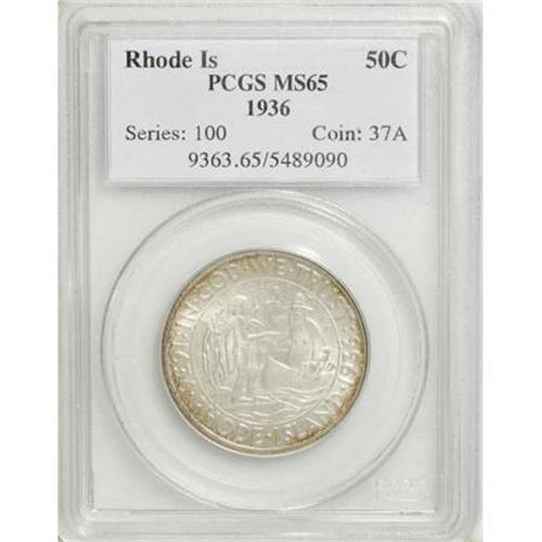<B>1936 50C Elgin MS65 PCGS,</B></I> attractive green-gray toning, minor marks on the skirt; <B>1936 Rhode Island MS65 PCGS, </B></I>dappled powder-blue and caramel-gold patina, a well preserved obverse; and a <B>1936 York MS65 PCGS, </B></I>delicate olive and cream-gray toning, in an old green label holder.<BR><BR><b>Shipping:</b> Coins & Currency (<a target="_blank" href="http://www.heritageauctions.com/common/shipping.php">view shipping information</a>)