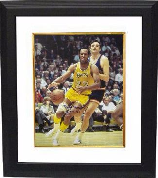 Elgin Baylor played 13 seasons as a forward for the NBA's Minneapolis Lakers/Los Angeles Lakers. Baylor was a gifted shooter, strong rebounder, and an accomplished passer. Renowned for his acrobatic maneuvers on the court, Baylor regularly dazzled Lakers fans with his trademark hanging jump shots. The No. 1 draft pick in 1958, NBA Rookie of the Year in 1959, and an 11-time NBA All-Star, he is regarded as one of the game's all-time greatest players. In 1977, Baylor was inducted into the Naismith Memorial Basketball Hall of Fame. Elgin Baylor has hand signed this Los Angeles Lakers 16X20 Photo with HOF 77. Certificate of Authenticity from Athlon Sports. Custom White Mat and Premium Black Frame as shown.