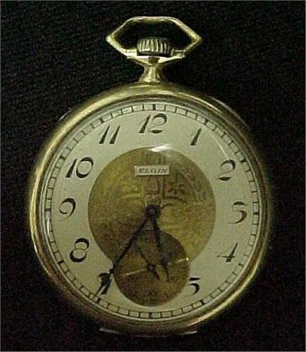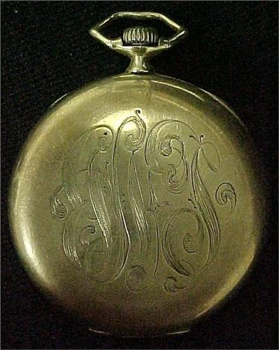 Elgin C. 1910 14k gold case pocketwatch, 1 3/4" diameter; 17 jewel movement; case marked Keystone 14k; monogrammed on back; watch is not running