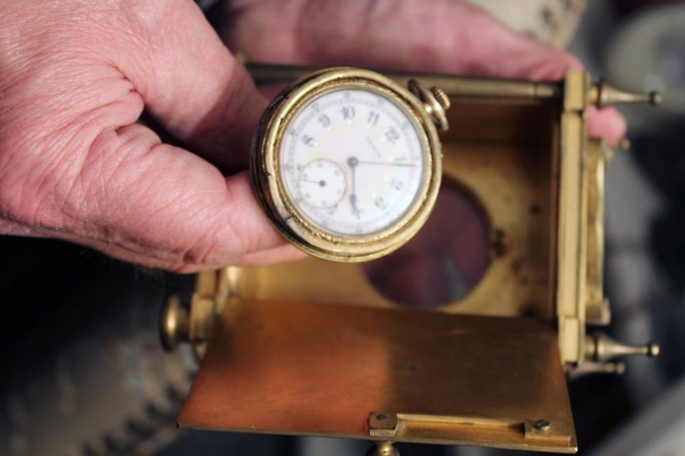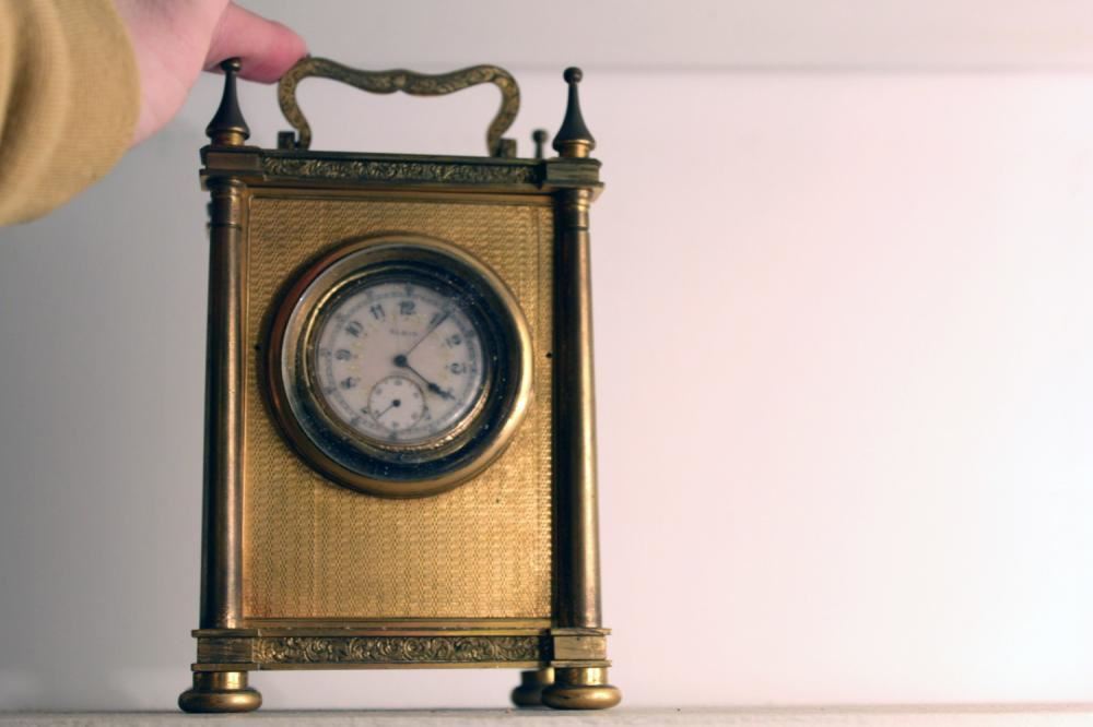 Elgin Carriage clock with bronze case. Can be removed to double as a pocket watch.