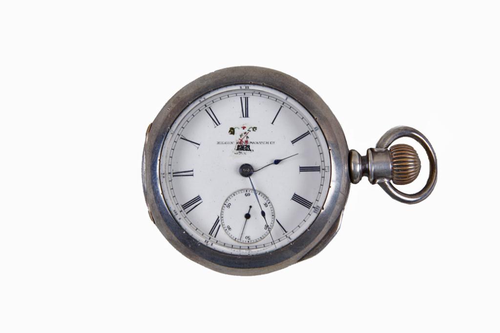 Elgin Coin Silver Case Pocket Watch In pear case, dated 1852, SW/LS, in working condition, glass case does not close, needs minor repair.In pear case, dated 1852, SW/LS, in working condition, glass case does not close, needs minor repair.