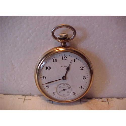 Elgin Men's gold pocket, open face, screw back cover; Mfg. Elgin National Watch Co., USA; embossed on works B&B, Royal 20 yrs. inside back cover. stem wind, runds, needs cleaning and new crystal; old one has crack but sound; 2" diameter; (c) late 1800's