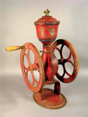 Elgin National Coffee Mill Edwards Co. Elgin, IL. Original paint, no pan. Wheel 12 inch diameter X 24 inches tall.