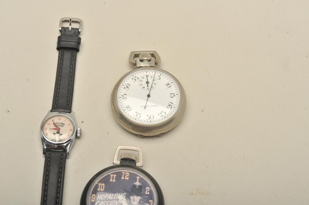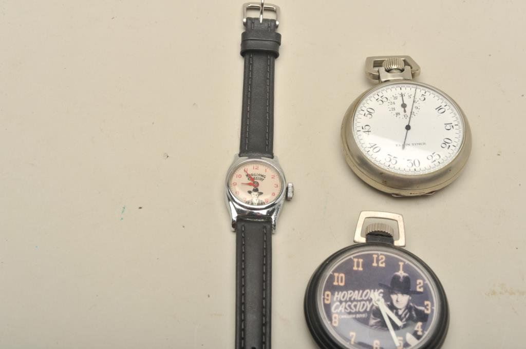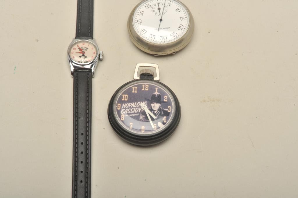 pocket watch in good condition and small size Hopalong Cassidy Wristwatch (girl's). U.S. Time. 3 pcs. Est:$150-300